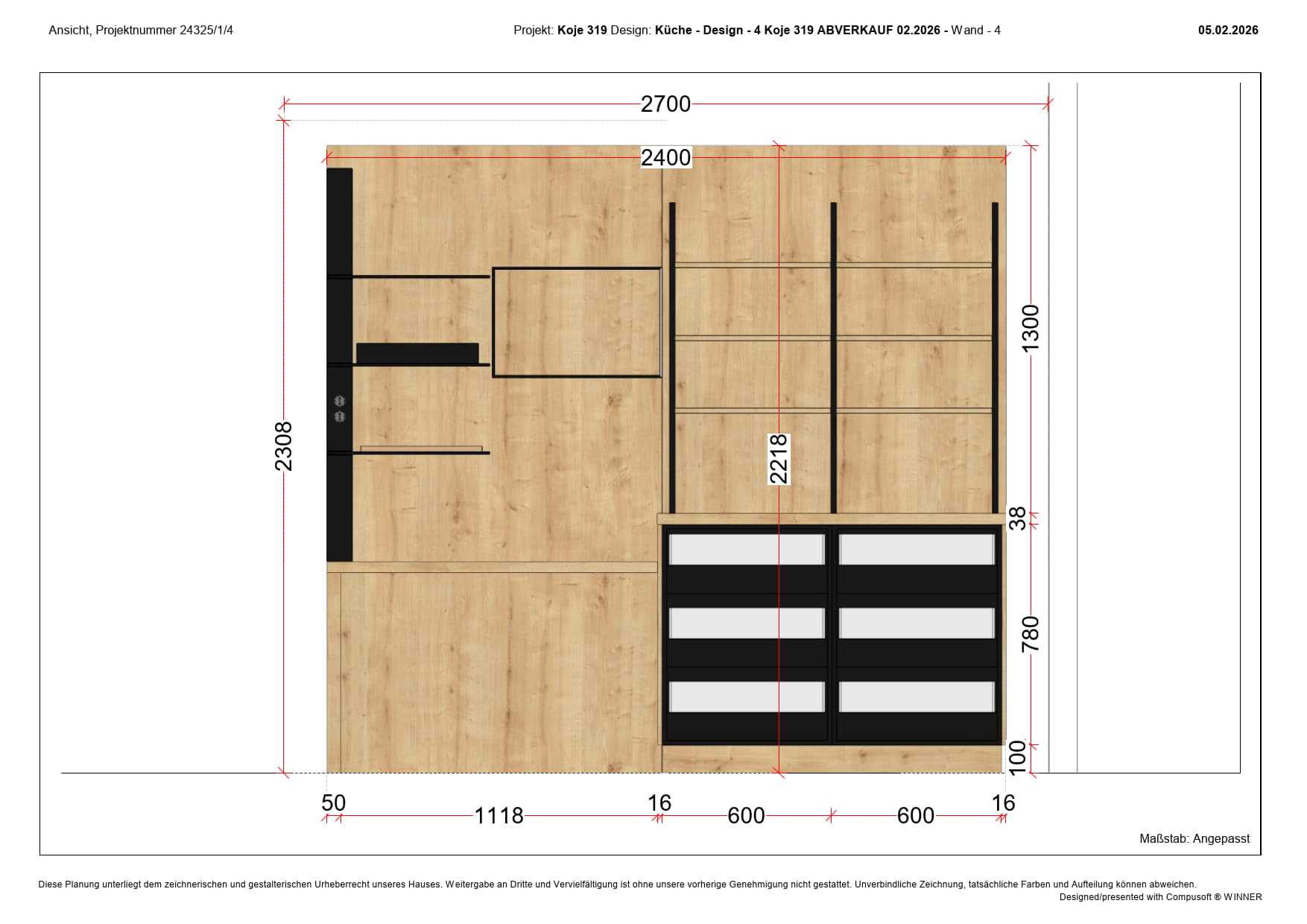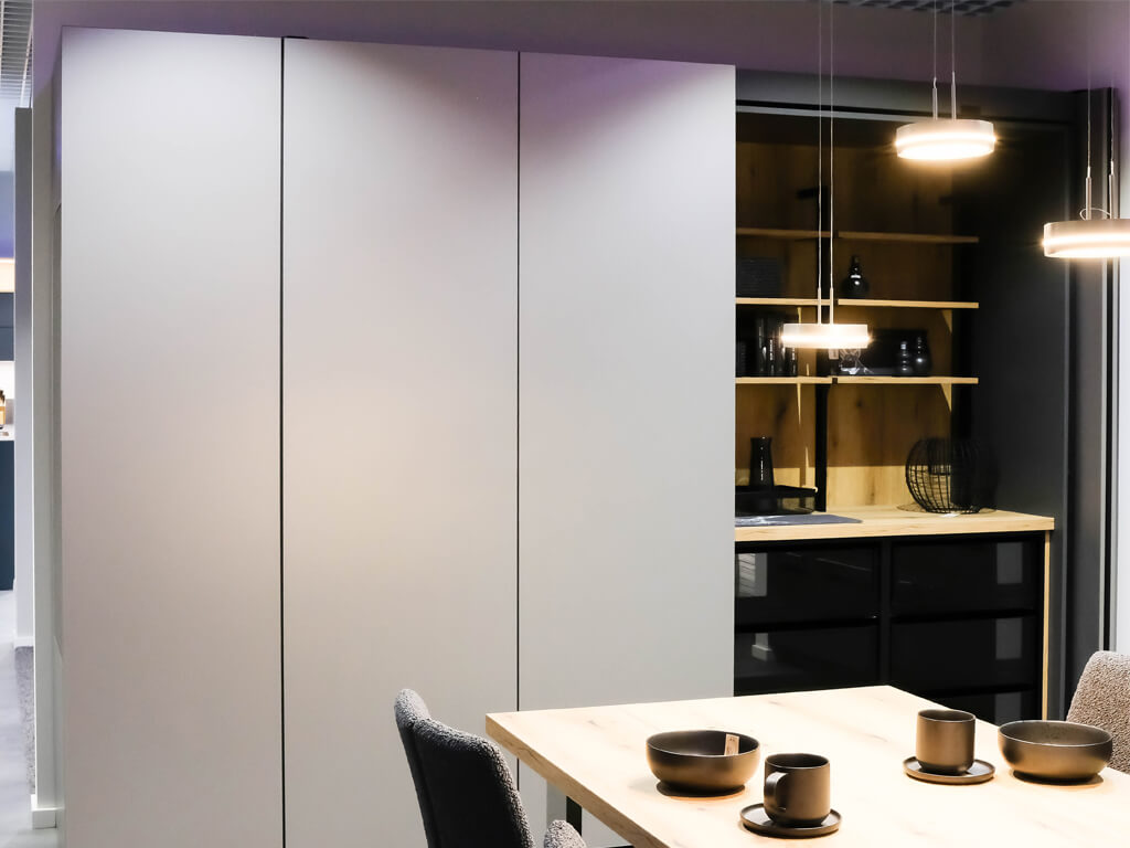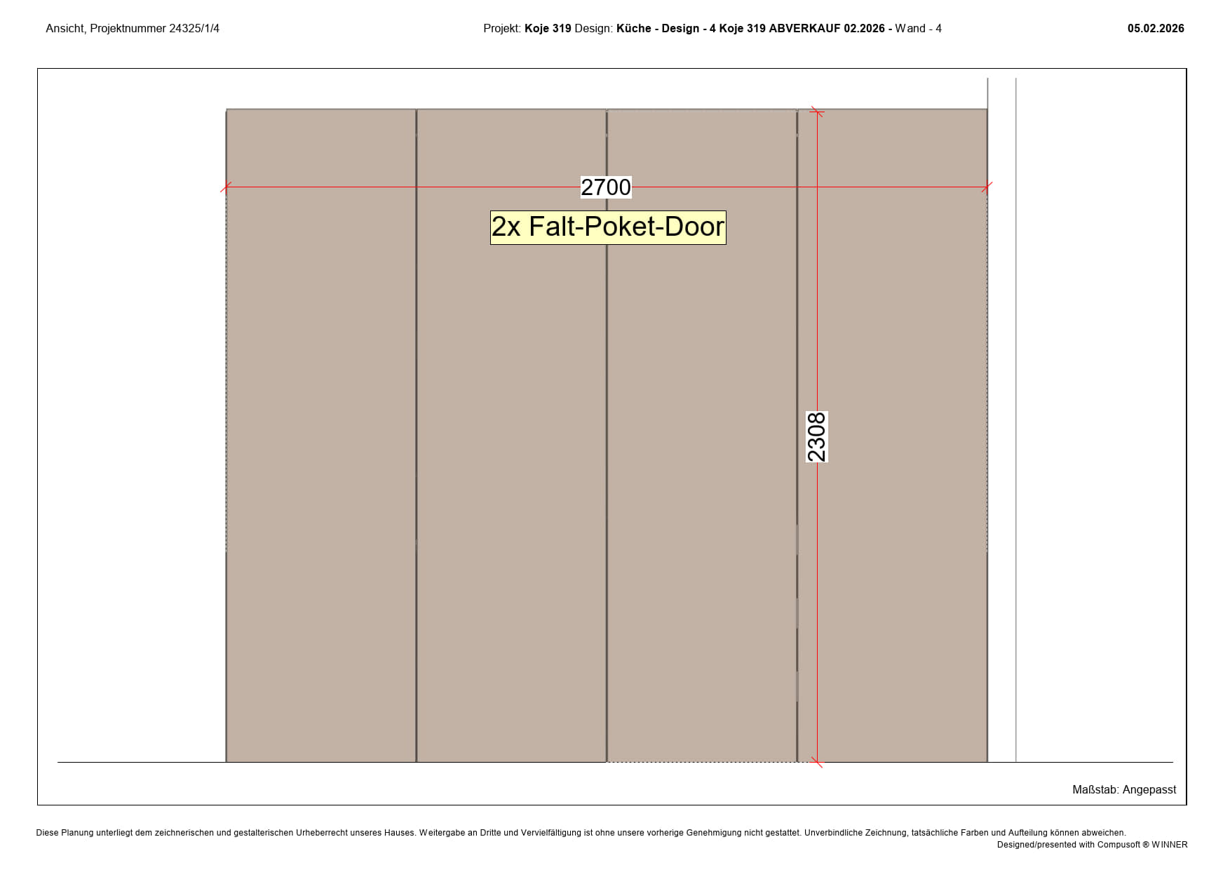 Korpus: K230P Art Pepper (Korpus in Melaminharzbeschichtung, evtl. werden noch Smartglaswände benötigt)