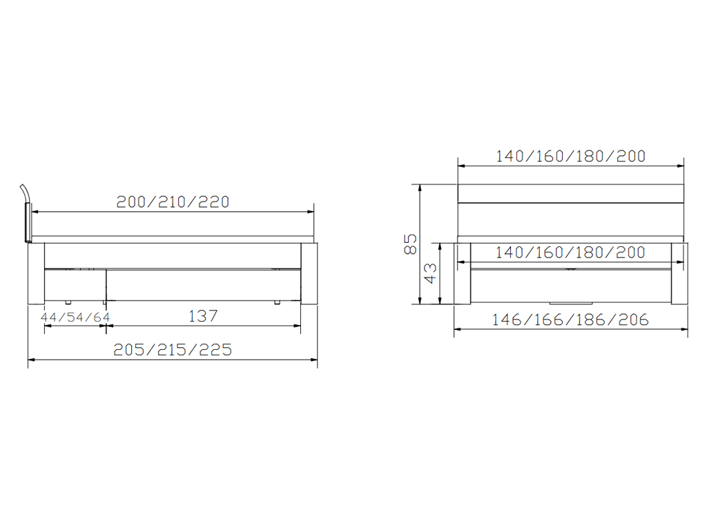 | Liegefläche: | 140 x 200 cm, 140 x 210 cm, 140 x 220 cm, 160 x 200 cm, 160 x 210 cm, 160 x 220 cm, 180 x 200 cm, 180 x 210 cm , 180 x 220 cm, 200 x 200 cm , 200 x 210 cm , 200 x 220 cm |
