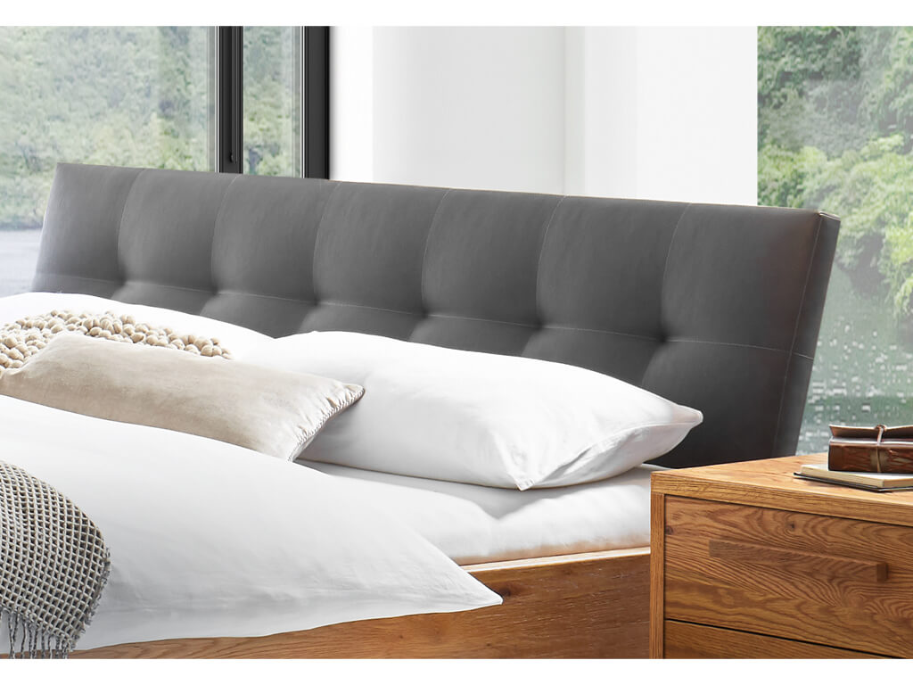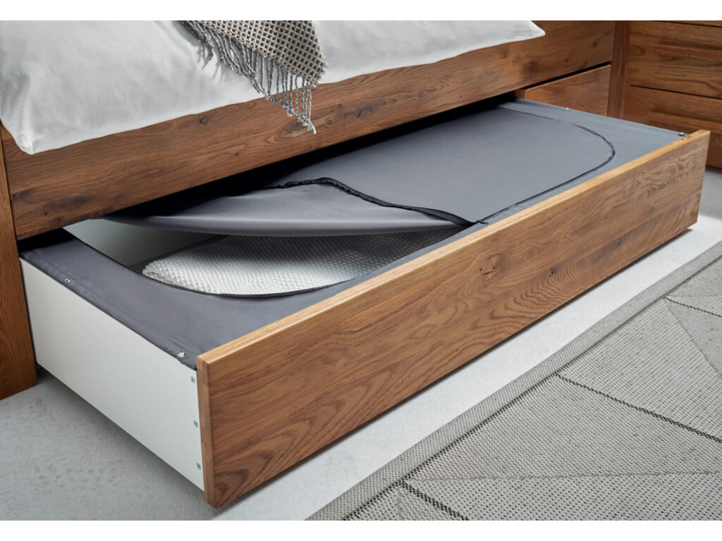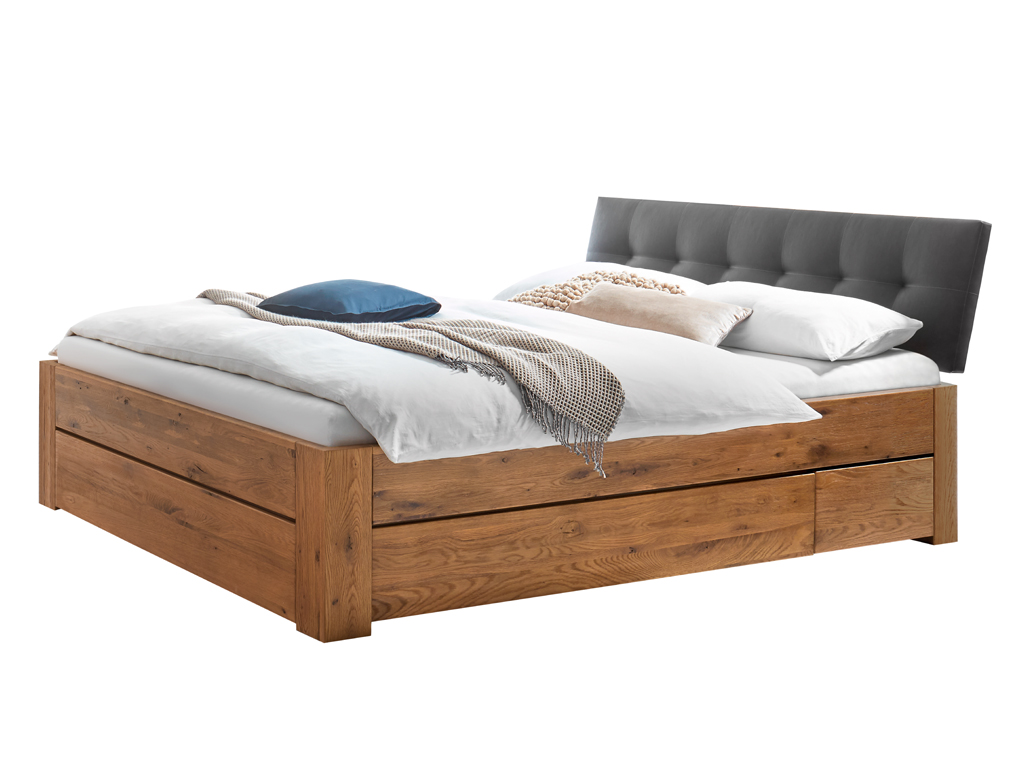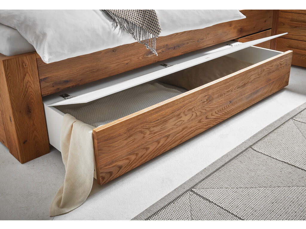 Produktinformationen "Hasena - Function Stauraumbett Cassone | Massivholz Wildeiche natur, gebürstet, geölt | Polsterkopfteil Ronna | verschiedene Größen & Farben konfigurierbar"