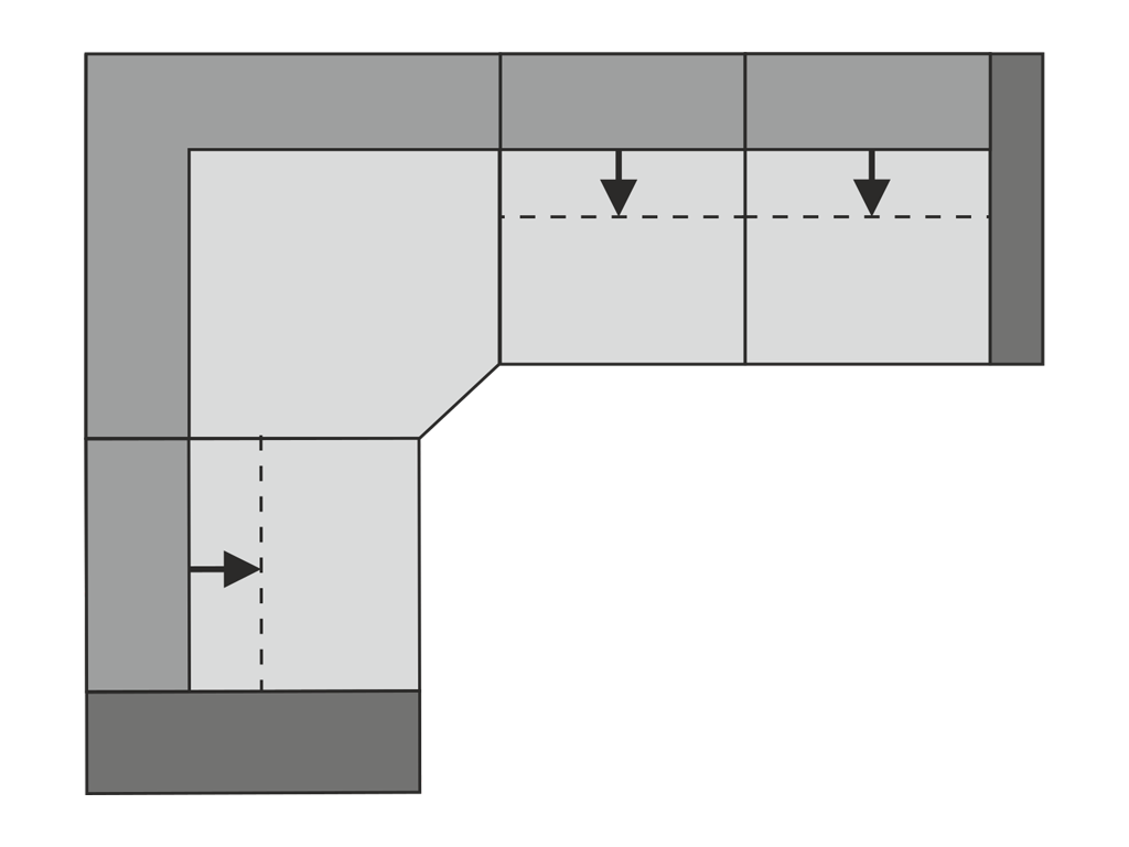 Schwenkrücken (SR): Die Sitztiefe kann mittels Schwenkrücken um 27 cm verstellt werden. Kopfteilverstellung bei Trapezecke (KV): Die Kopfteilteilverstellung erfolgt über einen Rasterbeschlag.