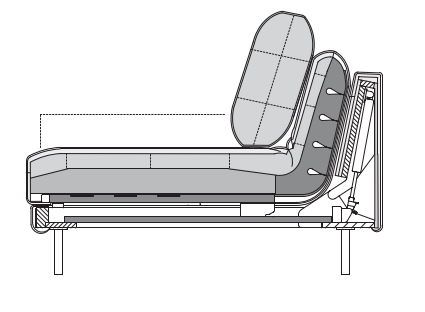 Abschluss Sofa mit Sitz-Rückenverstellung werden ohne montierte Seitenteile ausgeliefert.