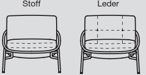 Der Sessel sieht in seiner Optik in Stoff und Leder unterschiedlich aus.
