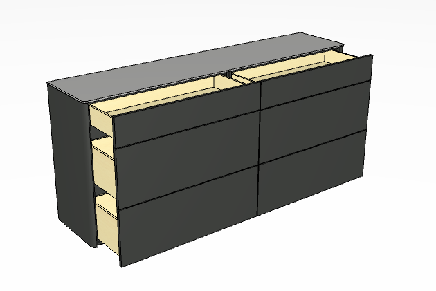 Furnierung: Fronten bis zu einer Höhe von 3 Rastern sind serienmäßig waagerecht furniert, höhere Fronten werden senkrecht furniert.