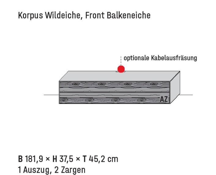 Maße: B 181,9 cm | H 37,5 cm | T 45,2 cm