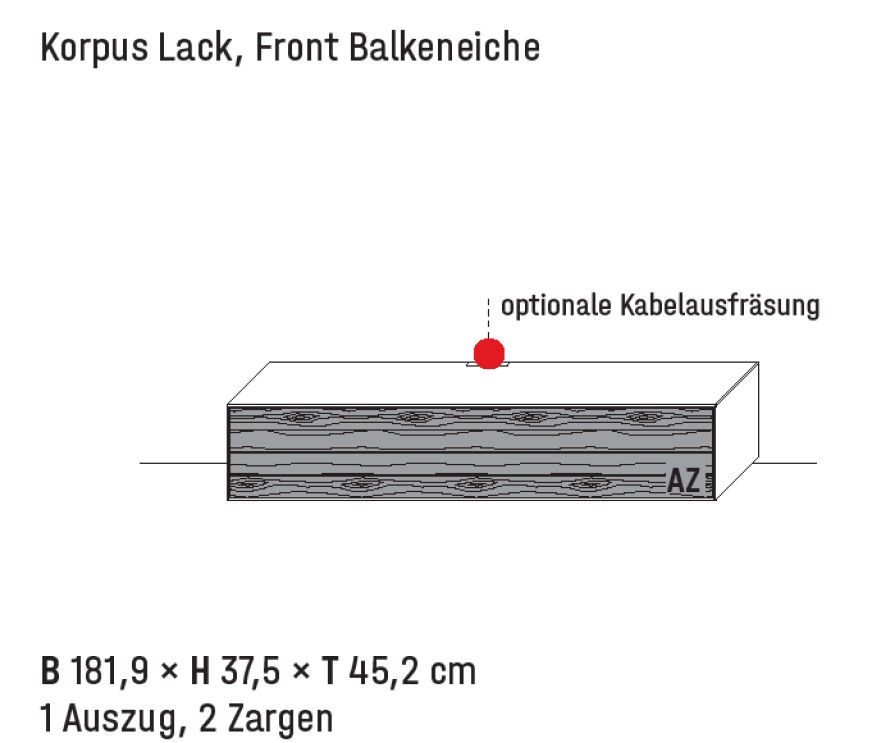 Maße: B 181,9 cm | H 37,5 cm | T 45,2 cm