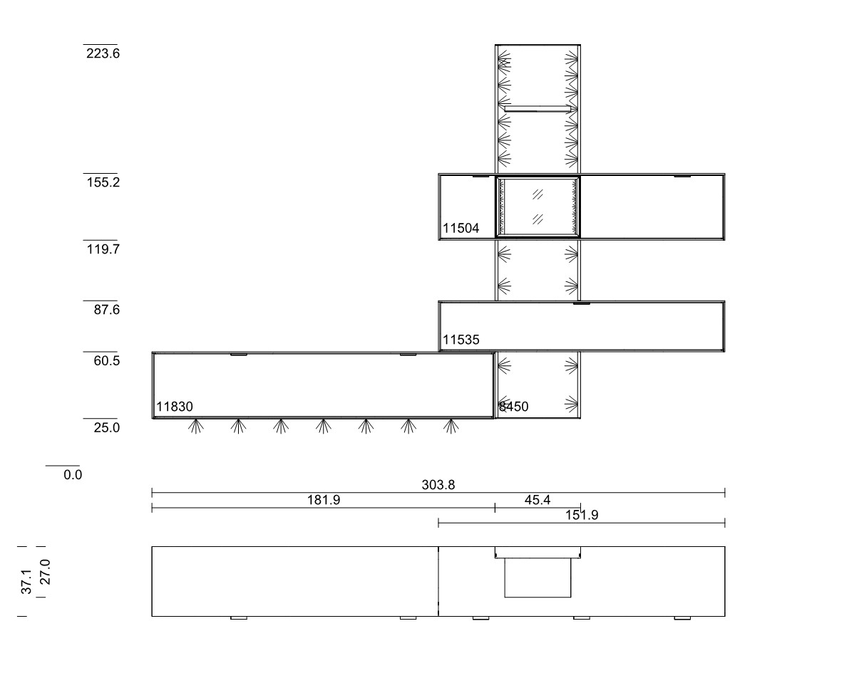 - Hängeelement (Type 11535) | H: 27,1 cm - B: 151,9 cm - T: 37,1 cm