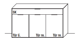 - 3 Türen, 2 Einlegeböden