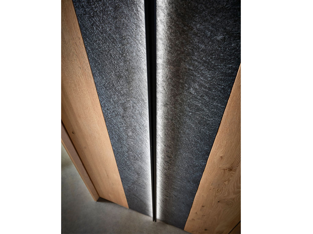 Der Steinfurnier-Akzent erschafft eine Atmosphäre die sowohl edel als auch naturverbunden ist. Entstehend aus echten Schieferblöcken, hat der Akzent eine einmalige Anmutung und überzeugt durch seine individuellen Strukturen und Farvariationen. Die Herstellung erfolgt durch das Abspalten von Steinoberflächen, die rückseitig mit GFK-Trägern verstärkt werden. Jeder Akzent ist ein Unikat.