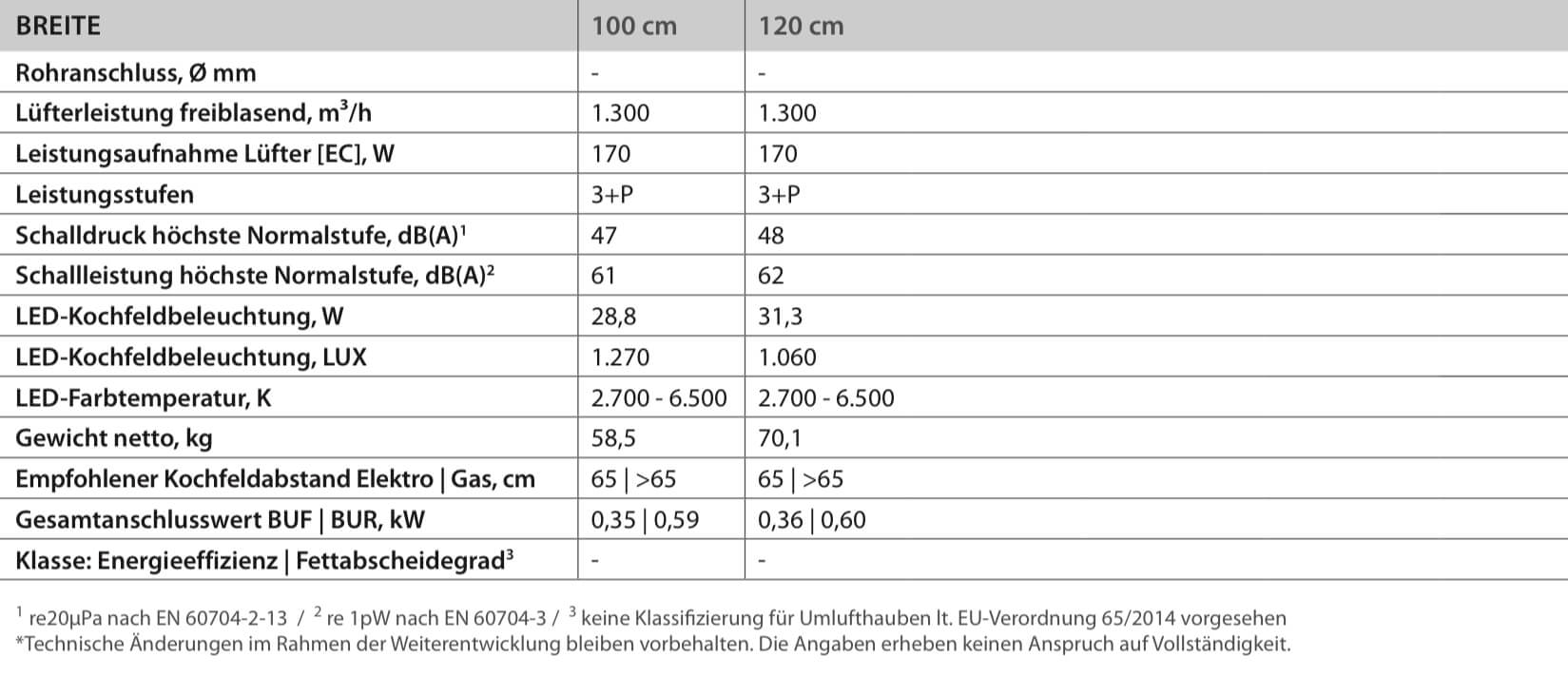 - Aktivkohlefilter: Ein Austausch der Aktivkohle ist nur alle zwei bis drei Jahre nötig, und das Filtergehäuse bleibt über die gesamte Lebensdauer der Haube hinweg erhalten.