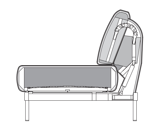 - dadurch kann der Rücken von einer Aufrechtposition in eine Relaxposition mit einer Rückenneigung von 30° verändert werden