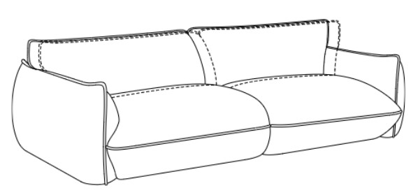Es ist eine typische Charaktereigenschaft dieses Modells, Wellen zu bilden. Das liegt an der unterschiedlichen Beschaffenheit der Bezugsmaterialien und der Art und Weise, wie Stoff und Leder auf die Einflüsse des Alltags reagieren. Körperwärme, Gewicht und Feuchtigkeit wirken sich unterschiedlich auf die Materialien aus, deswegen ist die Wellenbildung eine vollkommen natürliche Reaktion leger verarbeiteter Modelle.