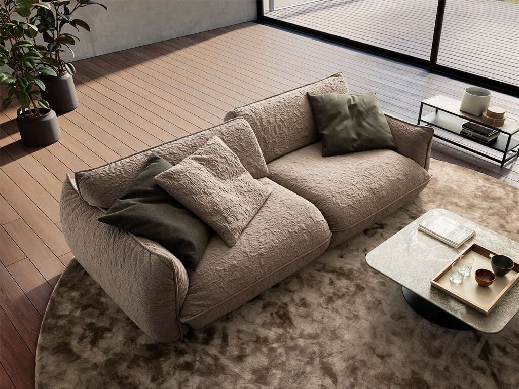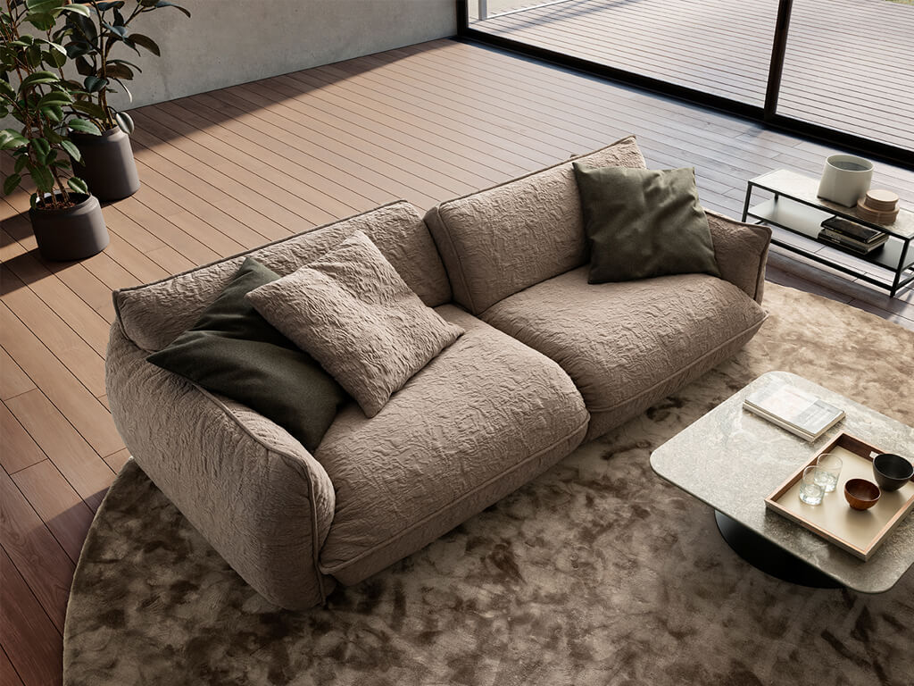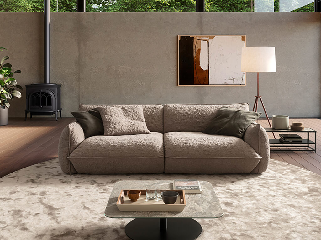 Das Sofa Fluffy macht seinem Namen alle Ehre und lädt mit seiner außergewöhnlich weichen Polsterung zum Versinken ein. Die markante, strukturierte Textur des Bezugs verleiht dem Möbelstück eine moderne und zugleich gemütliche Optik. Erstellen Sie sich jetzt deine ganz persönliche Wohlfühloase, indem Sie das Sofa direkt bei uns im Onlineshop konfigurieren!