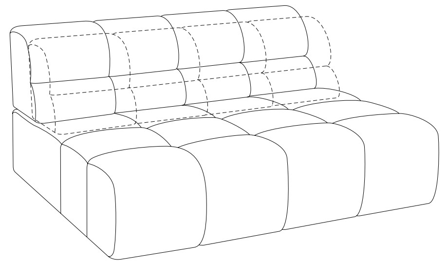 Die Elemente sind im Rücken immer echt bezogen und bieten damit viel Freiraum in der Positionierung des Modells.