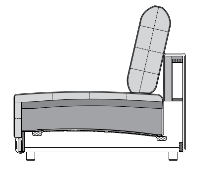 - Rückenpolster aus PolyurethanKaltschaum, „Raumgewicht“ 30 kg/m3 mit gekammerter Matte, gefüllt mit SchaumFaserFüllung.