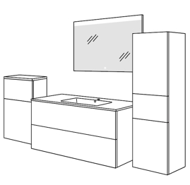 Lieferzustand: VormontiertKollektion: Bad | Programm 10 Möbelart: Badmöbel-Sets Spiegelart: Flächenspiegel eckig Waschtischart: Einbauwaschtisch eckig Waschtischschrank: 100 cm Breite: 210,0 cm Höhe: 169,1 cm Tiefe: 48,7 cm Farbe: grau Ausstattung: Drehtür, Schublade, Beleuchtung Energieeffizienzklasse: F Material: Melamin, Mineral Composite, Holzwerkstoff, Chrom, Metall, HPL Optik: Hochglanz - Waschtischschrank, 2 Schubladen