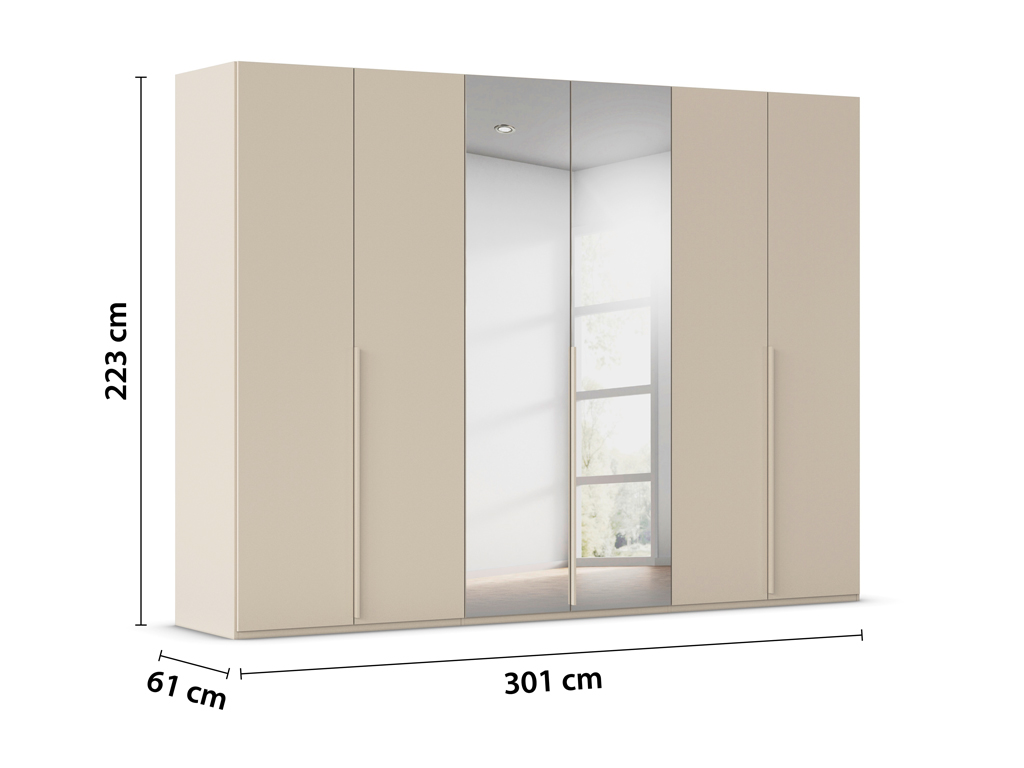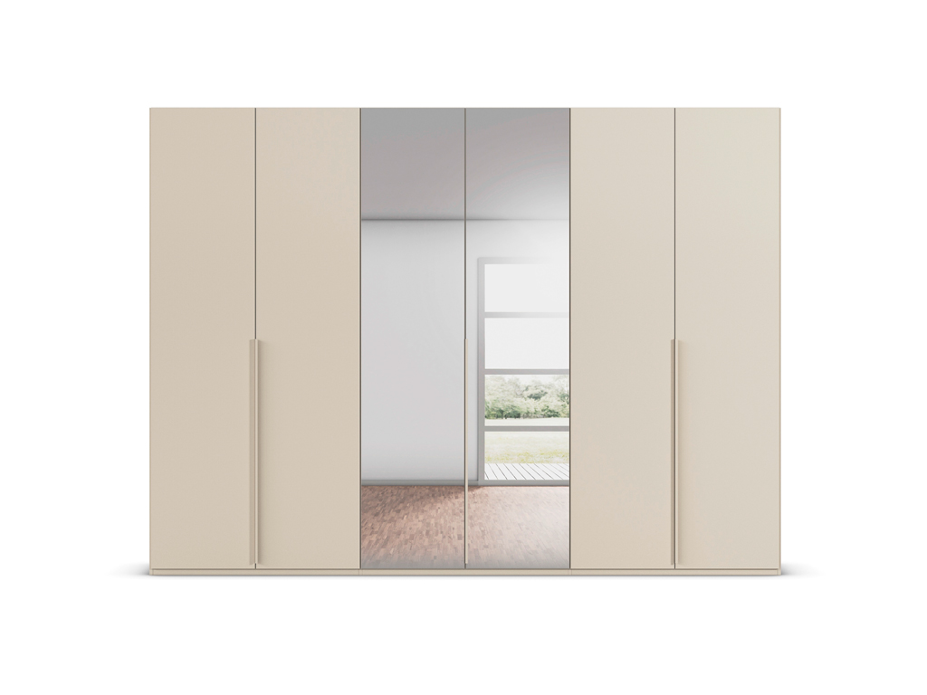 Produktinformationen "rauch BLACK - Scaletta Drehtürenschrank, 6-türig, 2 Spiegeltüren | B: 300, H: 223 cm | versch. Dekore, Massivholz oder Glas konfigurierbar"rauch BLACK - Scaletta Drehtürenschrank | elegante Schlafzimmermöbel | versch. Dekore, Massivholz oder Glas konfigurierbar | Spiegeltüren