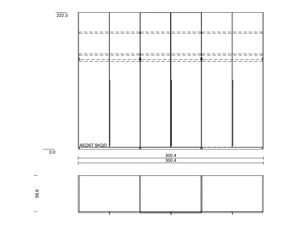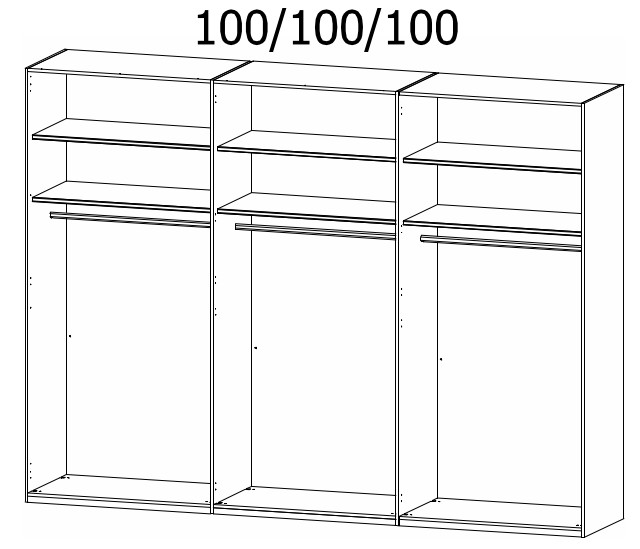 Maße: Breite: 300,0 cm, Höhe: 223,0 cm, Tiefe: 60,0 cm- 6-türig, 6 Fachböden und 3 Kleiderstangen