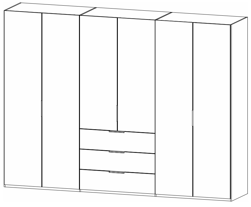 Produktinformationen "rauch BLACK - Scaletta Drehtürenschrank, 6-türig, 3 Schubkästen | B: 300, H: 223 cm | versch. Dekore, Massivholz oder Glas konfigurierbar"rauch BLACK - Scaletta 6-türiger Drehtürenschrank | elegante Schlafzimmermöbel | versch. Dekore, Massivholz oder Glas konfigurierbar | 3 Schubladen